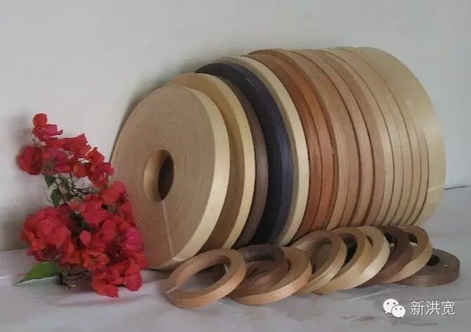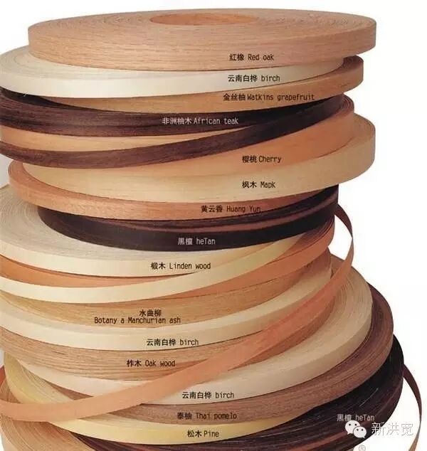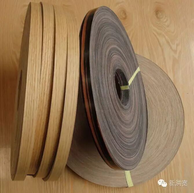 新洪宽天然木皮封边条与无纺布贴合紧密,不起毛,柔韧性强,木皮弹性高,耐磨性强,光泽度适中,木皮接头齿形按照木皮纹路裁剪指接设计,颜色、纹理过渡自然,保证木皮分切整齐。表面砂光后,平整,光滑,方便客户使用。封边条宽度一般为22mm规格,每卷标准长度200米。品种多样,有水曲柳木皮封边条、柚木木皮封边条、樱桃木皮封边条、黑胡桃木皮封边条、红橡木皮封边条、金丝柚木皮封边条、枫木木皮封边条、沙比利木皮封边条等各种国产、进口树种木皮封边条。