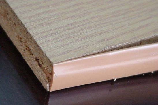 俗称纸封边,其优点是易枯,遇冷热不易伸缩、不易变形,但由于它的特性较脆易折,在家具生产搬运中易撞坏。
